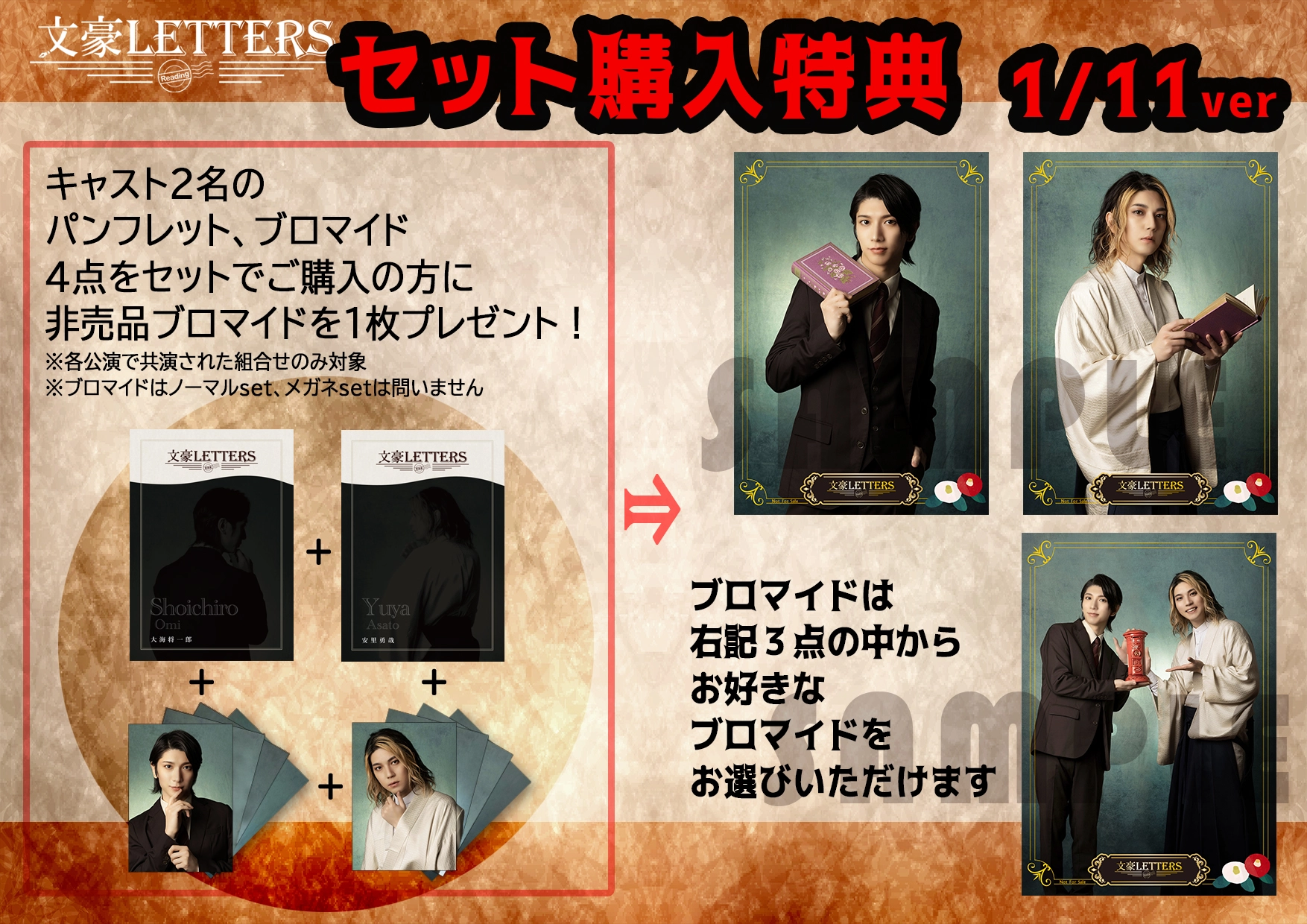 共演するキャスト2名のパンフレット、ブロマイドの4点をセットでご購入された方に非売品のブロマイドを1枚プレゼント!