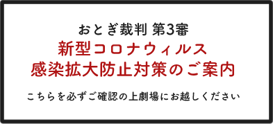 新型コロナウイルスの感染リスクのある昨今ですが、みなさまに楽しんでいただきたく上演を決定致しました。万全の対策を講じて上演いたしますが、感染拡大防止には皆様のご協力も大切になってまいります。お手数をおかけいたしますが、最大限のご協力をいただけますようお願い申し上げます。