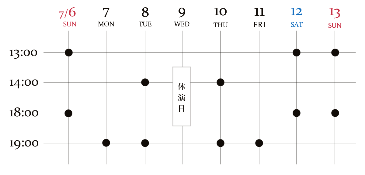 - 上演時間は約2時間を予定しております。途中休憩はございません。